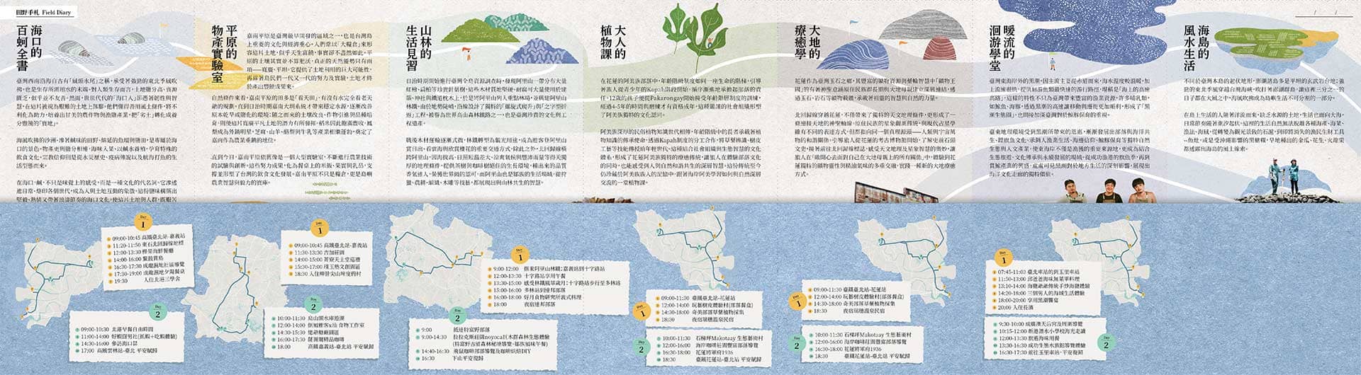 海風吹拂的沙洲、滲著鹹味的田野、綿延的魚塭與鹽田,是專屬於海口的景色。物產更與鹽分相連,海味入菜、以鹹水養殖,孕育特殊的飲食文化。宗教信仰則是從水災歷史、疫病傳說以及航海打魚的生活型態而來。
